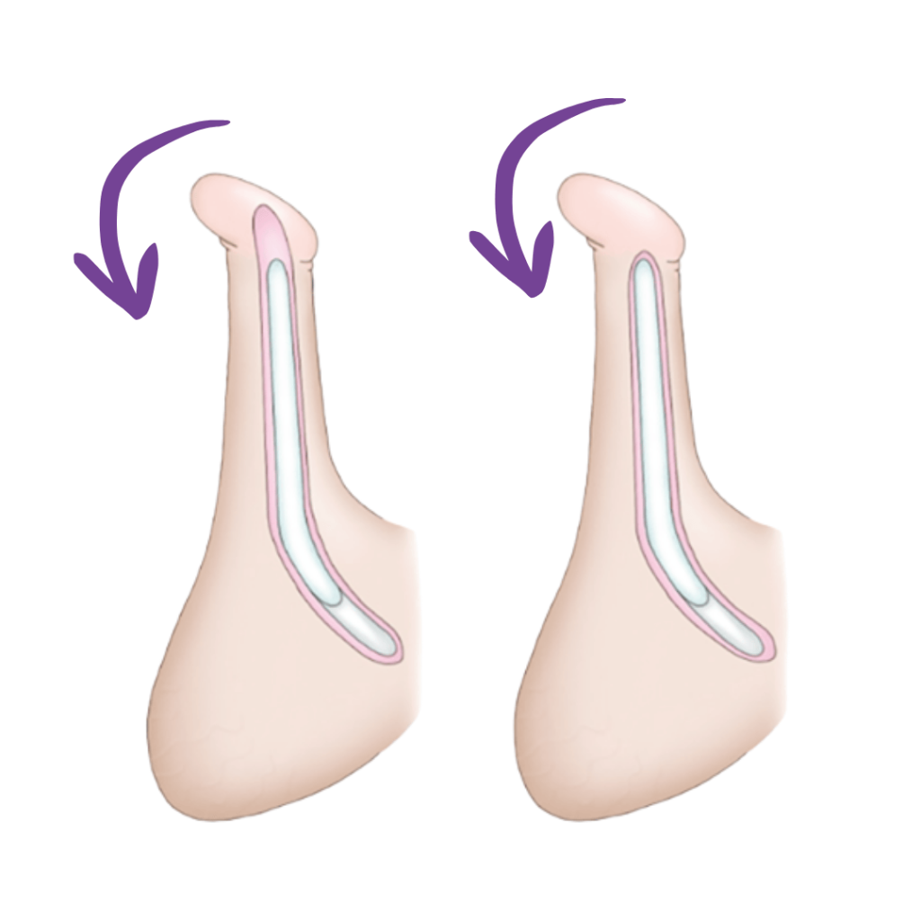 - El glande puede quedar más móvil o ligeramente inclinado (también “glande caído” o deformidad en avión Concorde.